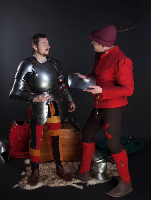 We strictly recommend to wear it only over the padded underarmor. Full arm protection with large spaulder plate will complete your tournament knight armor of the XVI century.