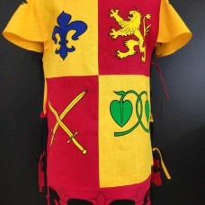 QUARTER COLORED TABARD WITH FIVE HERALDIC SYMBOLS
