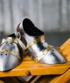 Sabatons are the plate shoes, and were used mostly by mounted knights. This model of the 1350-1450 years is a part of handcrafted full-plate medieval armor in Churburg style.