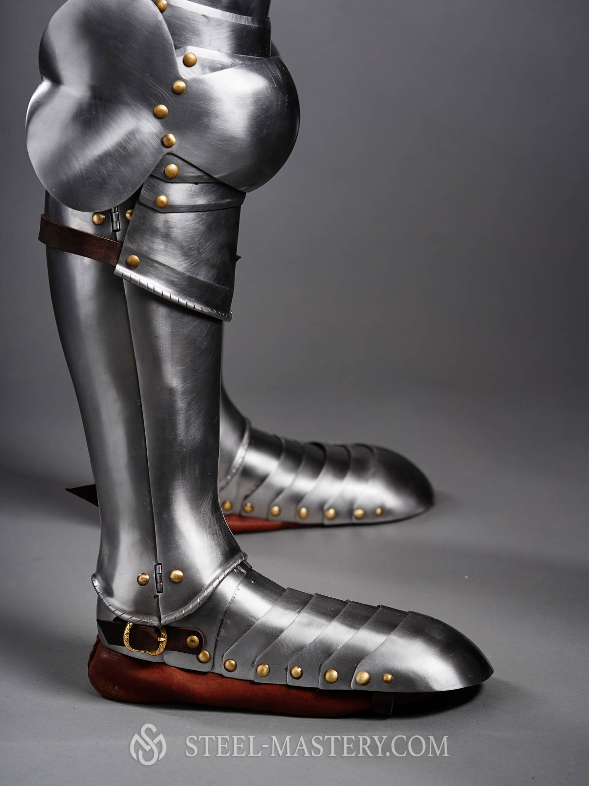Sabatons are made of seven steel segments, which are connected with rivets. Such design make armoured shoes well-articulated, so you may comfortable walk, ride or run.