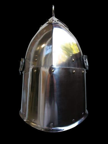 Sugarloaf helmet is a late variation of medieval head protection Topfhelm (Greathelm). Main distinction is a spherical conical dome. Such battle helmet was in active use in Europe in the first part of XIV century. Sugarloaf got its name from the American reenactors in the end of the XX century.