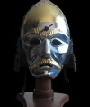 Among numerous archaeological findings on the Southeast of Asia, there were spherical conical helmets with iron masks. Such masks had weird hawk-nosed faces and specific drop-shaped eye shape, wide eyebrows and antrorse moustache. Some researchers suggested that masks had simply fake character and were not used during the battle. Other historians considered that such helmets were belonged to warriors of Ancient Rus. However, M.V. Gorelik proved that helmets with facemasks were related to protective Mongolian body armor. Anthropological type, which is depicted on the mask, resounds “ancient Altaic ideal man-hero” that “had being remained in Asia despite of the change of nations, languages and races from the V century B.C until XV century A.D.”.
