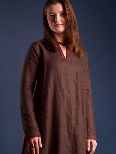 Undershirt (medieval chemise) is made of linen and decorated with hand-made embroidery around neckline and cuffs.
