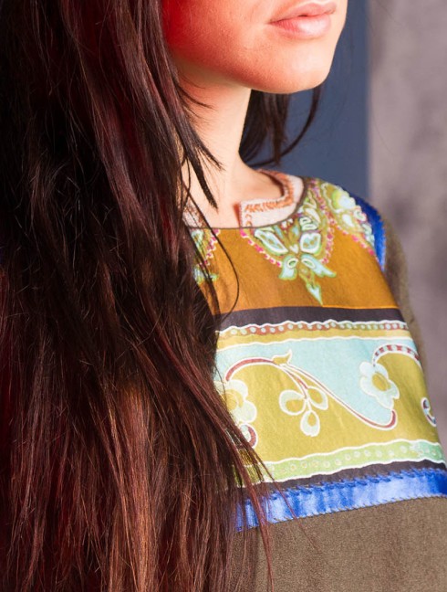 Dress is made of wool (not less then 80% natural wool). It is decorated with inserts of silk on the neckline and cuffs.