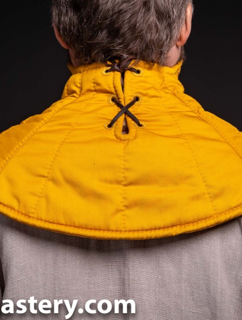 Usually, helmet was combined with padded aventail, that is an addition to the Bascinet or Barbute type helmet. It perfectly protects the shoulders and neck, and its high front padded part covers your chin. It is very important while using Bascinet with or without visor.