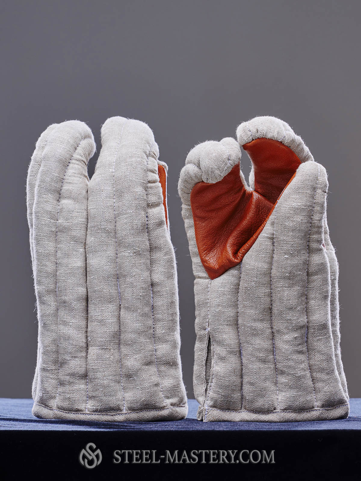 These 3-finger padded cotton gauntlets provide a good protection for hands while medieval swordcraft training and fencing.