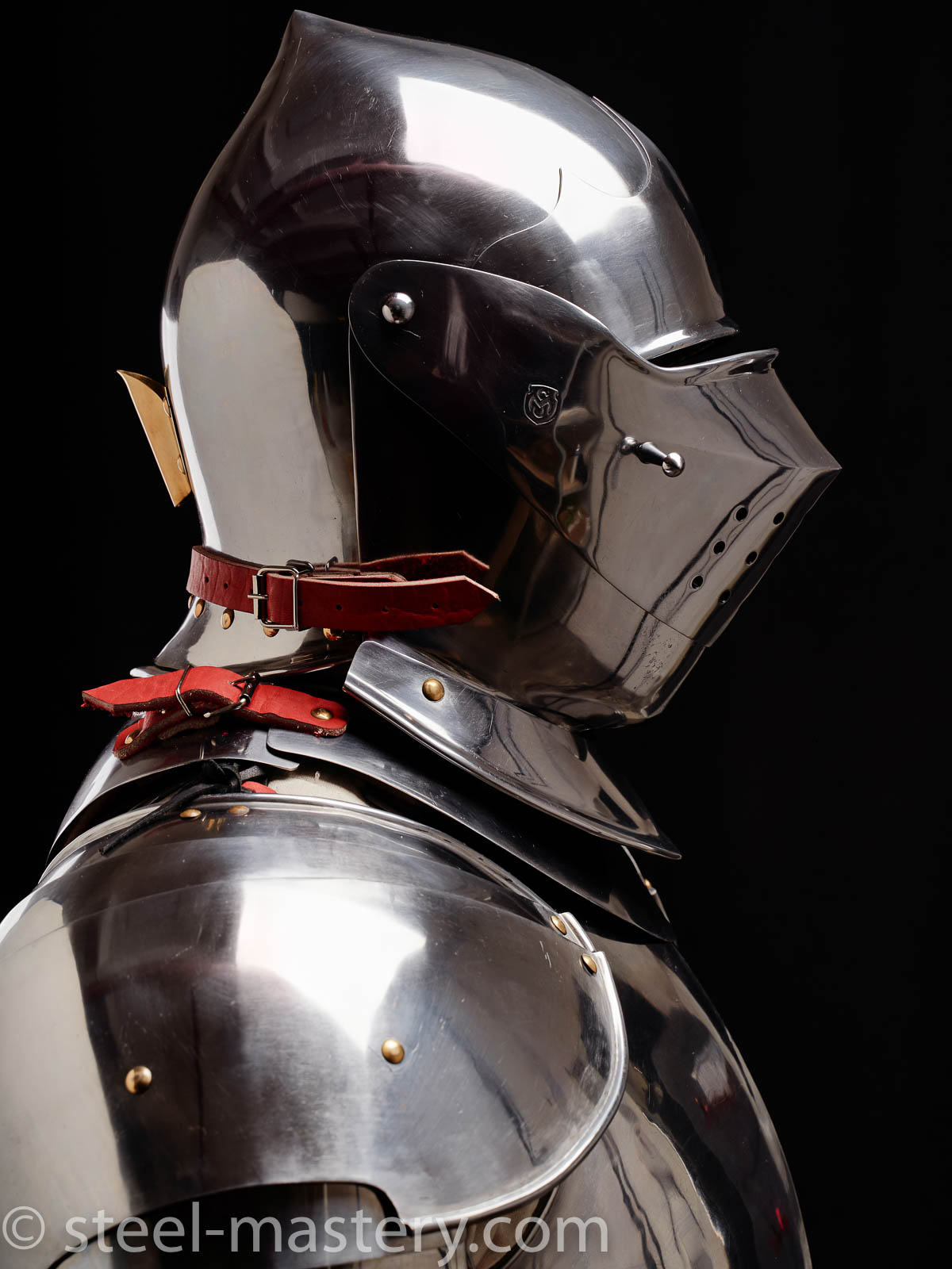It is a typical helmet for the late XVth century, widespread in Italy, France, the Low Countries, Spain, and surely – England. Armet completely encloses the head while being compact and light enough to move.