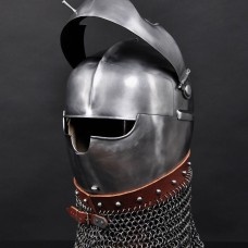 Armet helmet has unusual and ingenious to his time construction, with cheeckpieces hinged to the bowl that opened to admit the head.