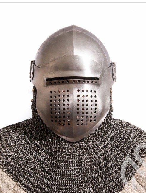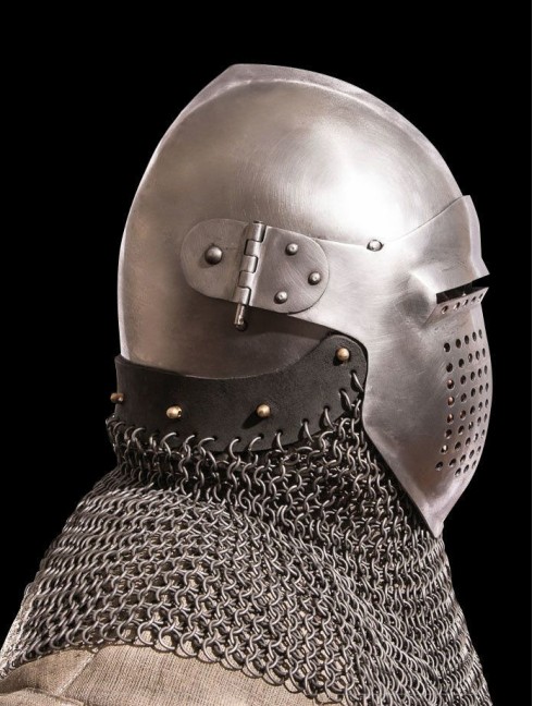 Bascinet is one of the most popular and widespread medieval knight helmet in the XIV century.