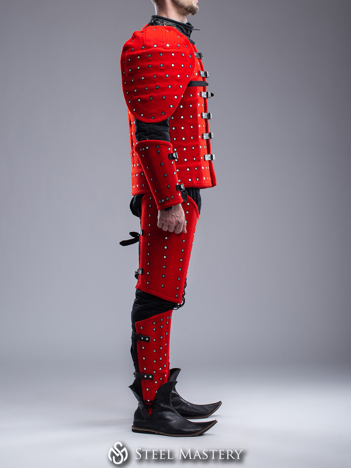 The set features a combination of rigid plates and flexible segments, strategically arranged to offer maximum protection while allowing freedom of movement.
