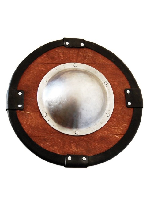 This model has 30 cm (12 inches) in diameter, hot-forged umbo of 3.5 mm steel, leather edging, wooden handle and belt hook. It's comfortable and durable buckler, well suited to attacking tactics of warfare.