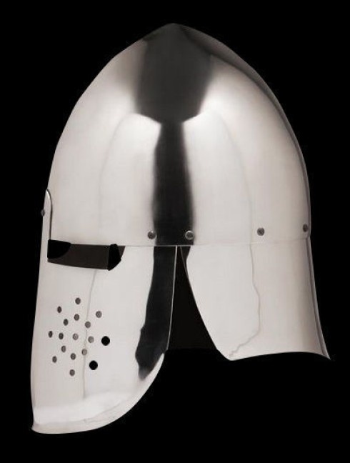 You may also like these models of closed helmets: fluted Norman helmet, knightly closed helmet of the XIII century, “Phrygian cap” helmet with plate neck protection.
