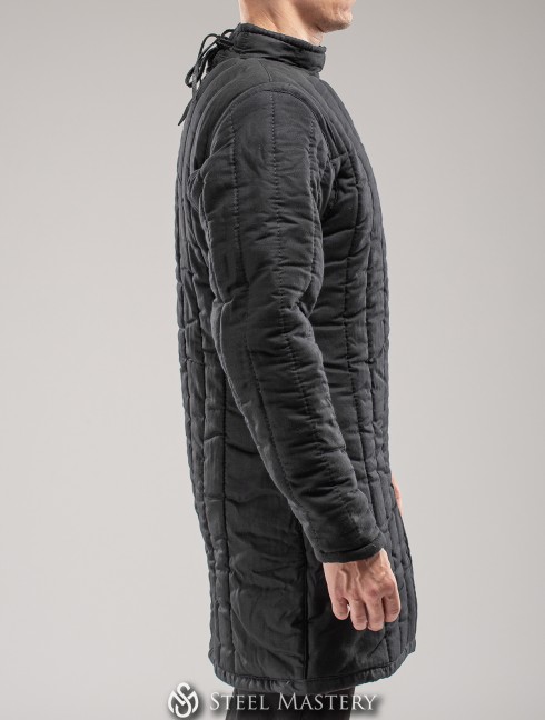 European gambeson is one of the most popular padded armor of X-XII centuries. This closed-front model was very reliable and provided good protection together with main armor. This gambeson jacket was widespread among medieval knights, soldiers and warriors of different armed services.