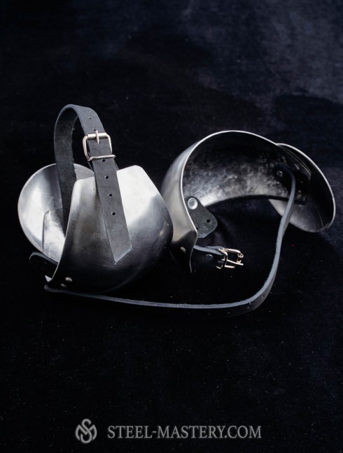 Elbow caps with plain rondel is an element of knight battle outfit. Quite often, cap was supplied with circle plates, attached to the outer side of cap – a rondel, for additional defense.