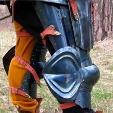 Hinged cuisses are kept on the thigh with firm leather belts and buckles. Segmented knee part is articulated, so your moves are free and comfortable. There are also three segments under the kneecap.