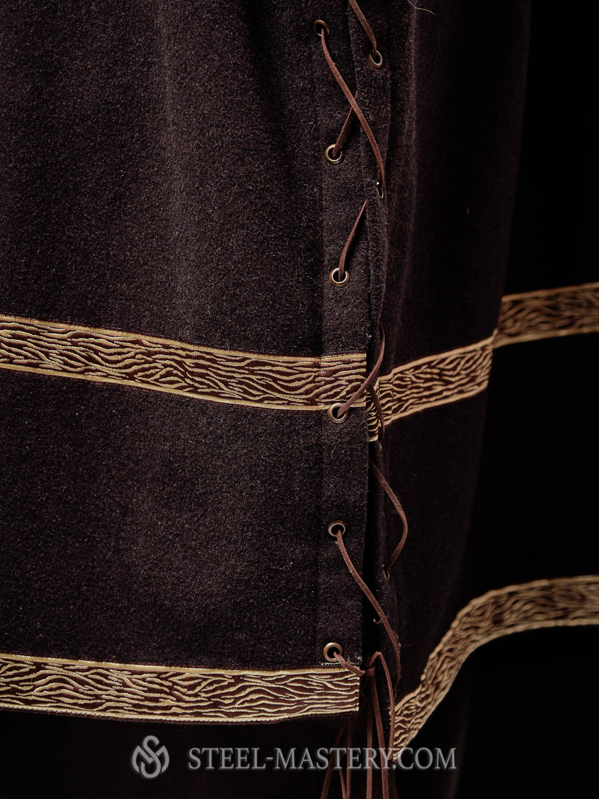 3. woolen cotta decorated with trim and lacing on each side. Sleeveless it is fastened with buttons.