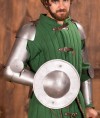 All parts are fixed firmly on your arms with leather belts. Additionally, plate arm protection is fastened to gambeson with leather straps.