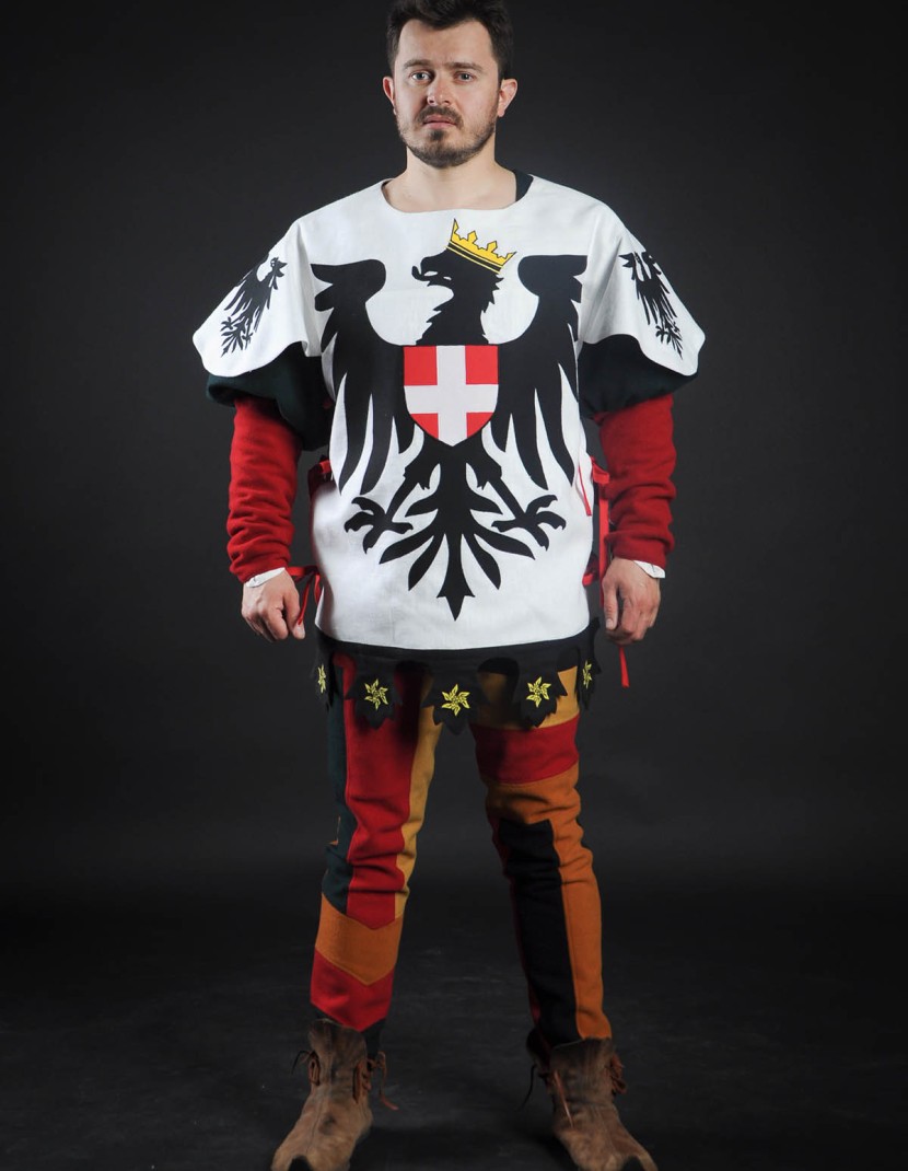 Coat of arms (tabard) with your emblem photo made by Steel-mastery.com Tabard with French lilies (Fleur-de-lis)  photo made by Steel-mastery.com Black and red knight tabard with griffins and crossbow photo made by Steel-mastery.com Knight linen tabard with an crown, crest and red heart.  photo made by Steel-mastery.com Coat of arms (tabard) with your emblem photo made by Steel-mastery.com QUARTER COLORED TABARD WITH FIVE HERALDIC SYMBOLS photo made by Steel-mastery.com Armor kit Waffenrock photo made by Steel-mastery.com Half-colored tabard with black and white half-eagles  photo made by Steel-mastery.com Medieval coat of arms decorated with a dragon, chess pattern and royal lilacs – Fleur-De-Lis photo made by Steel-mastery.com Tabard with black eagle with crown photo made by Steel-mastery.com QUARTER COLORED TABARD WITH FIVE HERALDIC SYMBOLS photo made by Steel-mastery.com Tabard with silk-screening of scarlet dots, golden swords, and green oak leaves photo made by Steel-mastery.com Tabard with swords and lion photo made by Steel-mastery.com Tabard with axes photo made by Steel-mastery.com Knight linen tabard with an crown, crest and red heart.  photo made by Steel-mastery.com Coat of arms (tabard) with cock with arrows photo made by Steel-mastery.com Coat of arms (tabard) with cock with arrows photo made by Steel-mastery.com Coat of arms (tabard) with your emblem photo made by Steel-mastery.com Scarlet tabard with white rising swan and black lilies photo made by Steel-mastery.com Medieval coat of arms decorated with a dragon, chess pattern and royal lilacs – Fleur-De-Lis photo made by Steel-mastery.com Half-colored tabard with black and white half-eagles  photo made by Steel-mastery.com Medieval coat of arms decorated with a dragon, chess pattern and royal lilacs – Fleur-De-Lis photo made by Steel-mastery.com Tabard with black eagle with crown photo made by Steel-mastery.com White cotton tabard with purple lining and decoration photo made by Steel-mastery.com