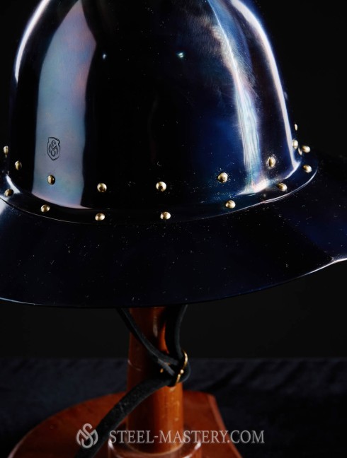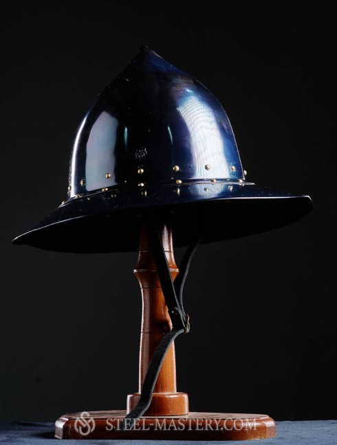 Helmet Chapel (or Kettle helmet or Eisenhut) was popular from the early XIII century until the end of the XVI century among infantry. Such medieval helmets were well-known for its shape of brimmed hat.