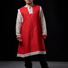 This model of sleveless medieval tunic has contrast applications on the neckline and sleeves. It will go perfectly with undershirt.