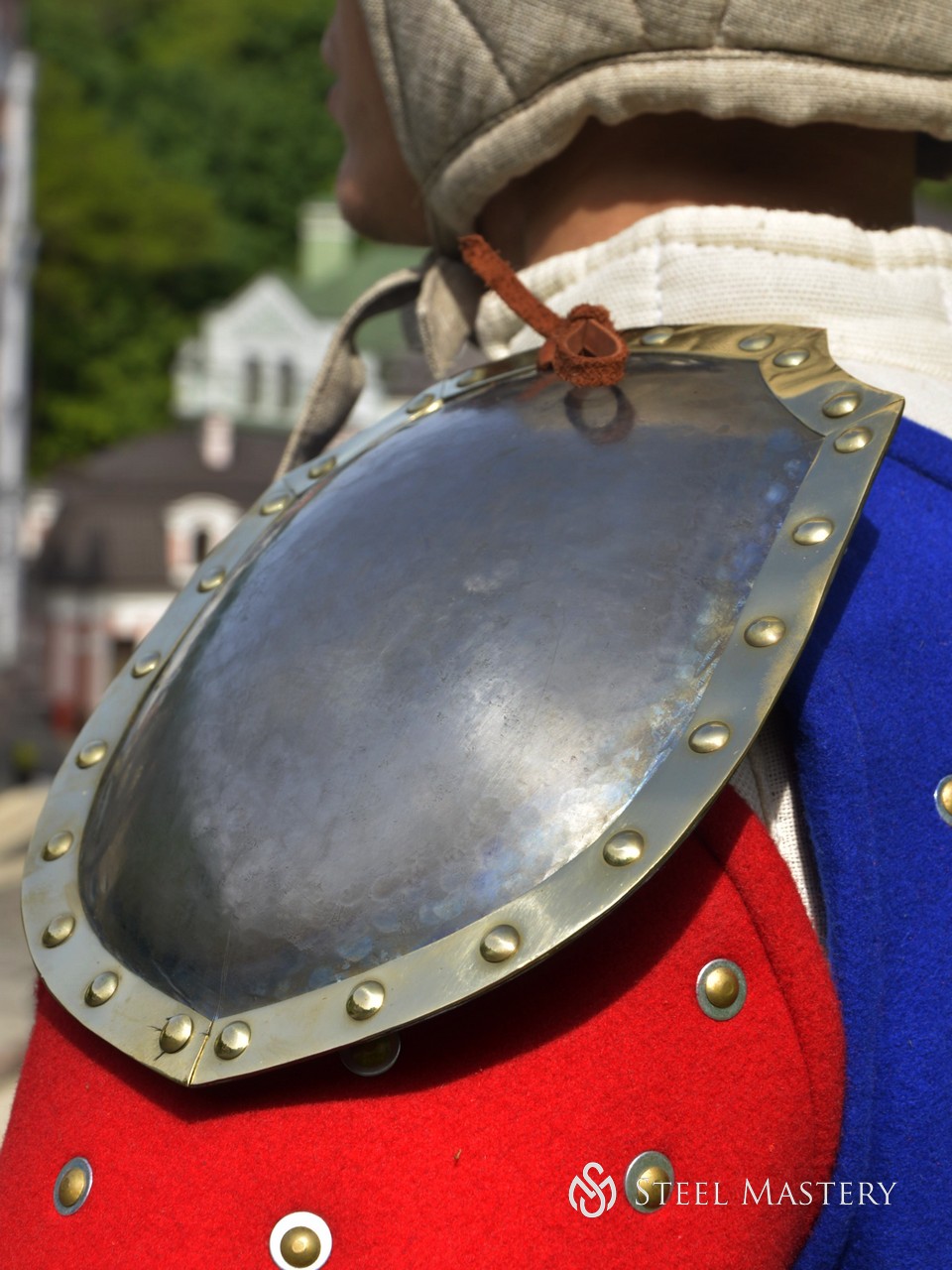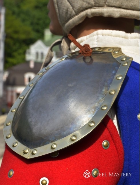 Shoulders with elbow caps, and knee caps are the parts of SH-02 (Brigandine armor set XIIIth century), but no one can stop the noble knight from wearing them with another set or on their own.