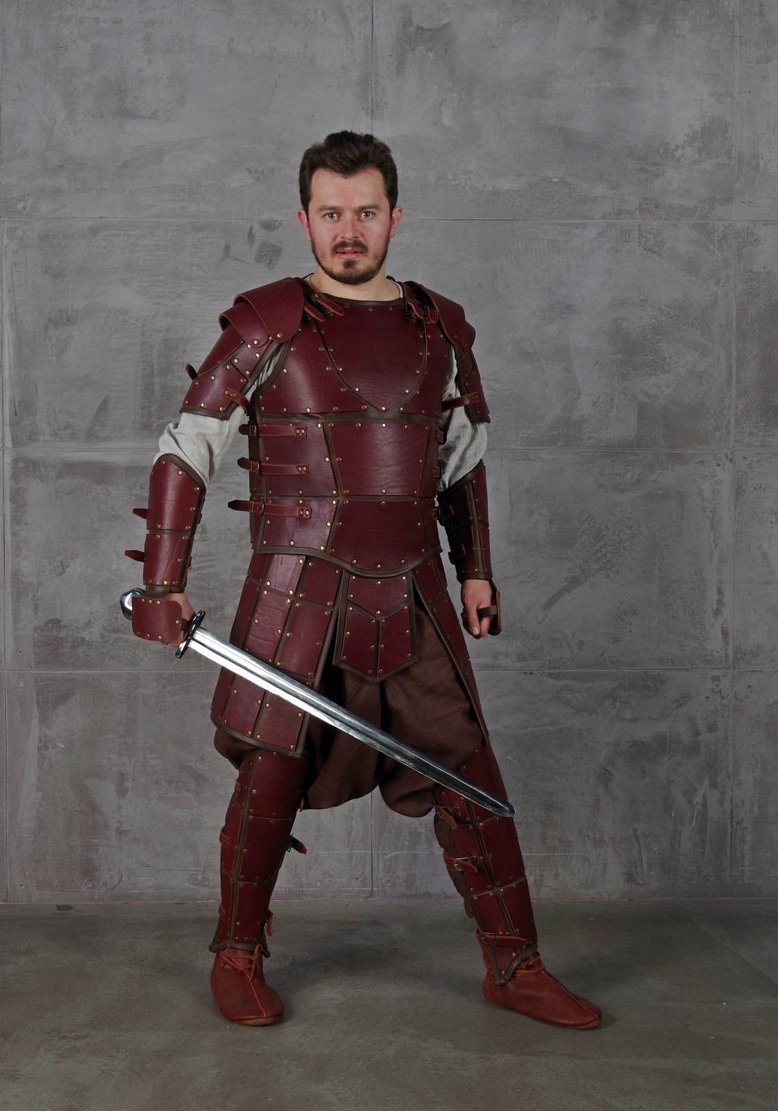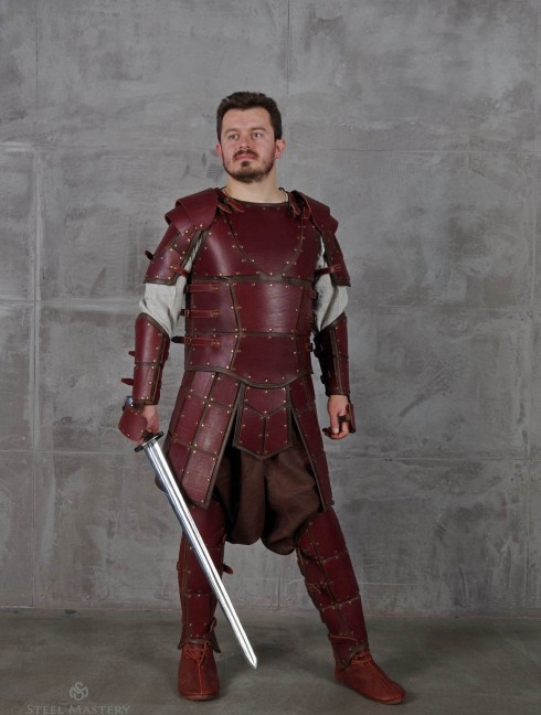 Set of leather armour is handcrafted in style of fantasy series "Game of Thrones".