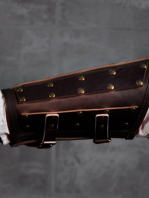 This light arm protection has base of flexible leather. We offer black, red or brown leather for base of your bracers.