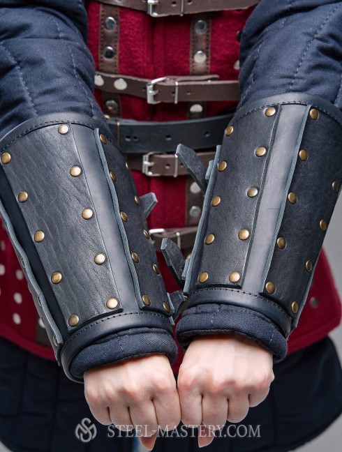 If bright colors and golden fittings are in your plans for medieval leather armor, so we are at your service – your bracer will be as you wish!