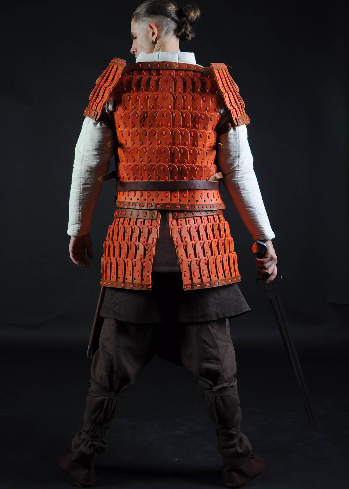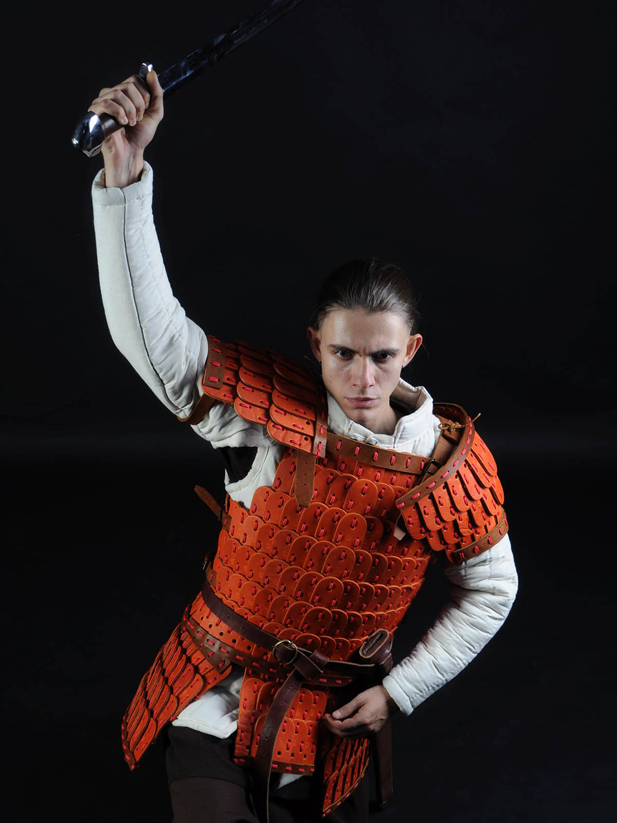 Remembering origin of lamellar armor, Steel Mastery artisans developed comfortable, light and good protecting leather lamellar armor set, which is ideal for reproduction of look and armament of Mongol warrior. It does not restrict movements of fighter and keeps combat qualities at the same time. There is functional leather armor for real connoisseurs.
