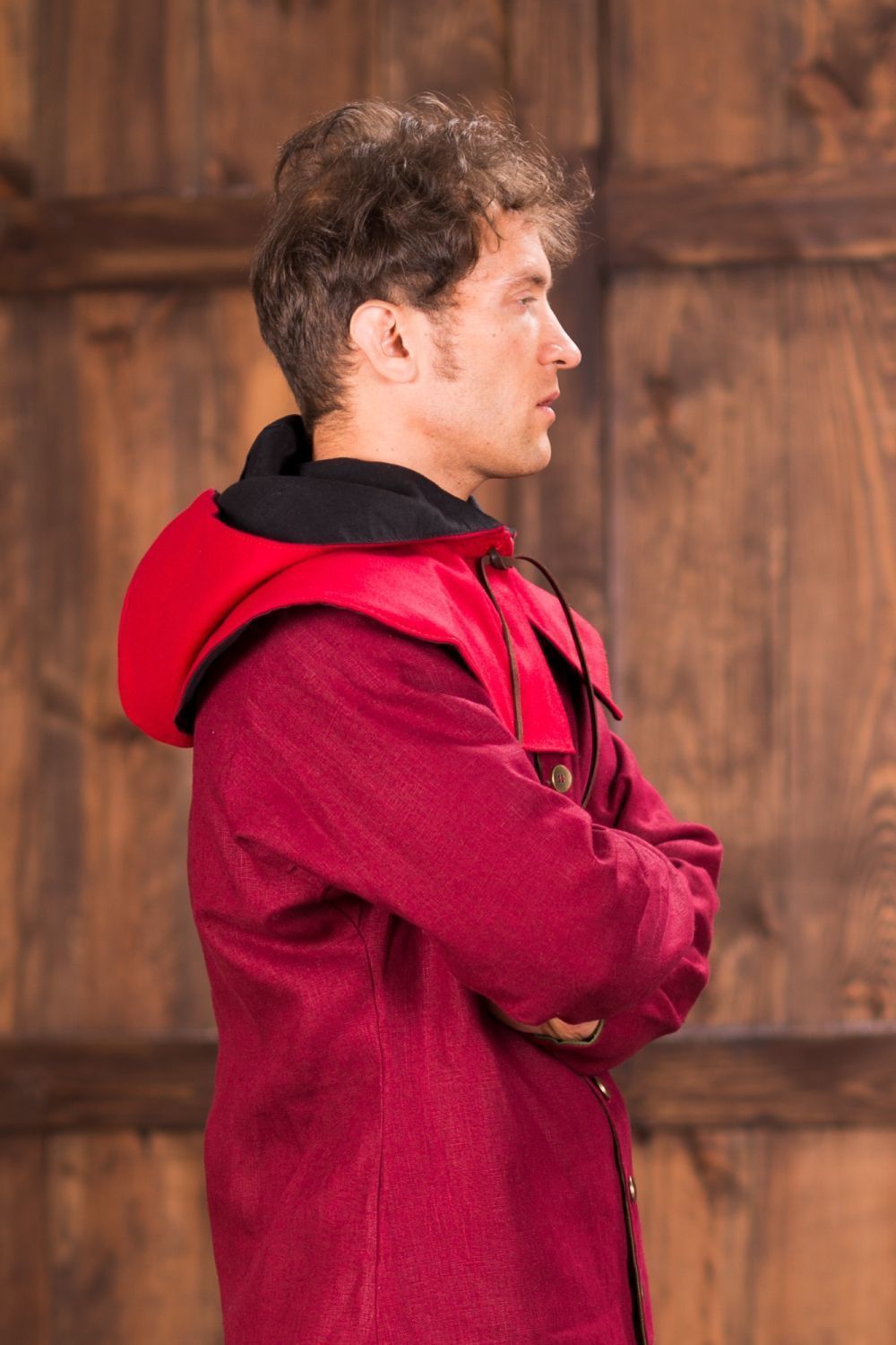 Hood was one of the most widespread type of headwear in the Middle Ages. There was a usual headcloth with pelerine, that covered shoulders. Often, hood had long tail with length up to 3 meters. Good had been fastened with strings or buttons under the chin.