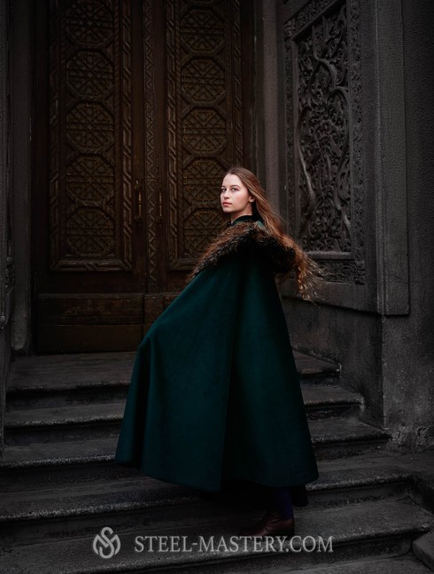 Fabulous thick fabric protects from wind and cold, and gives the female figure such a majestic outline that a girl in this wool viking cloak one would like to sing in the sagas.