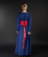 This medieval ladies dress is absolutely cross functional and might be a base for any fantasy style or early medieval period look. Just have a look at gravures of the early Middle Ages and you’ll understand that they in particular inspired our tailors. Yet, a belt, which makes waist thinner and emphasizes a severe look with its rich handle and slightly frivolous silk ribbon, is carrying some from corset and a dab of Orient.