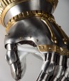 Gauntlets are made in stylisation based on the well-known hand armor from Museo Nazionale del Bargello (Florence)and armor from Chuburg castle. One of the most famous examples of hourglass gauntlets is the pair that was created in Milano, 1370 ca. Since 1390 gauntlets featured scaled or articulated plate fingers.