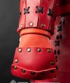 So, make yourself comfortable and have a look at this armored good-looker in front of you! Though, it is modest enough, this true son of the Land of the Rising Sun is steeped in Buddhist humility, hardened by spirit of bellicose warrior monks sōhei and is perfect even in details. From the splendid black leather, equally modest and striking, to the bright and firm cord of the noble and manly scarlet color, with which armor’s parts are fastened together. However, you may choose other colours of leather and cord by your wish.