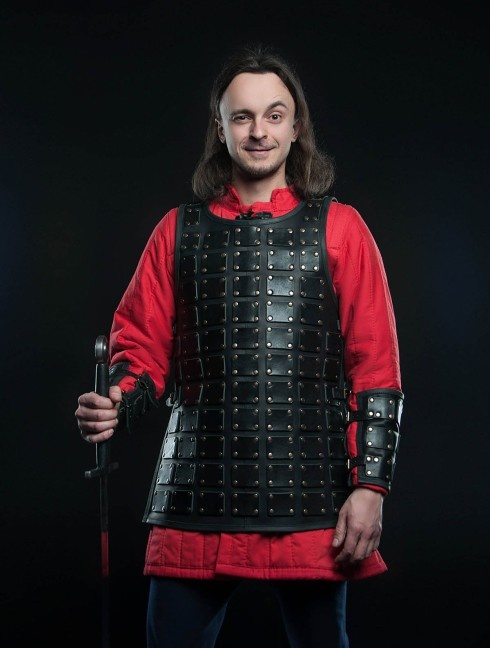 This leather costume has main feature of its medieval ancestors - natural, pleasant to the touch, hard and plastic, first material from which people began to make real armor and remains in business to this day. It is especially good because it can serve you as an armor or as a costume.