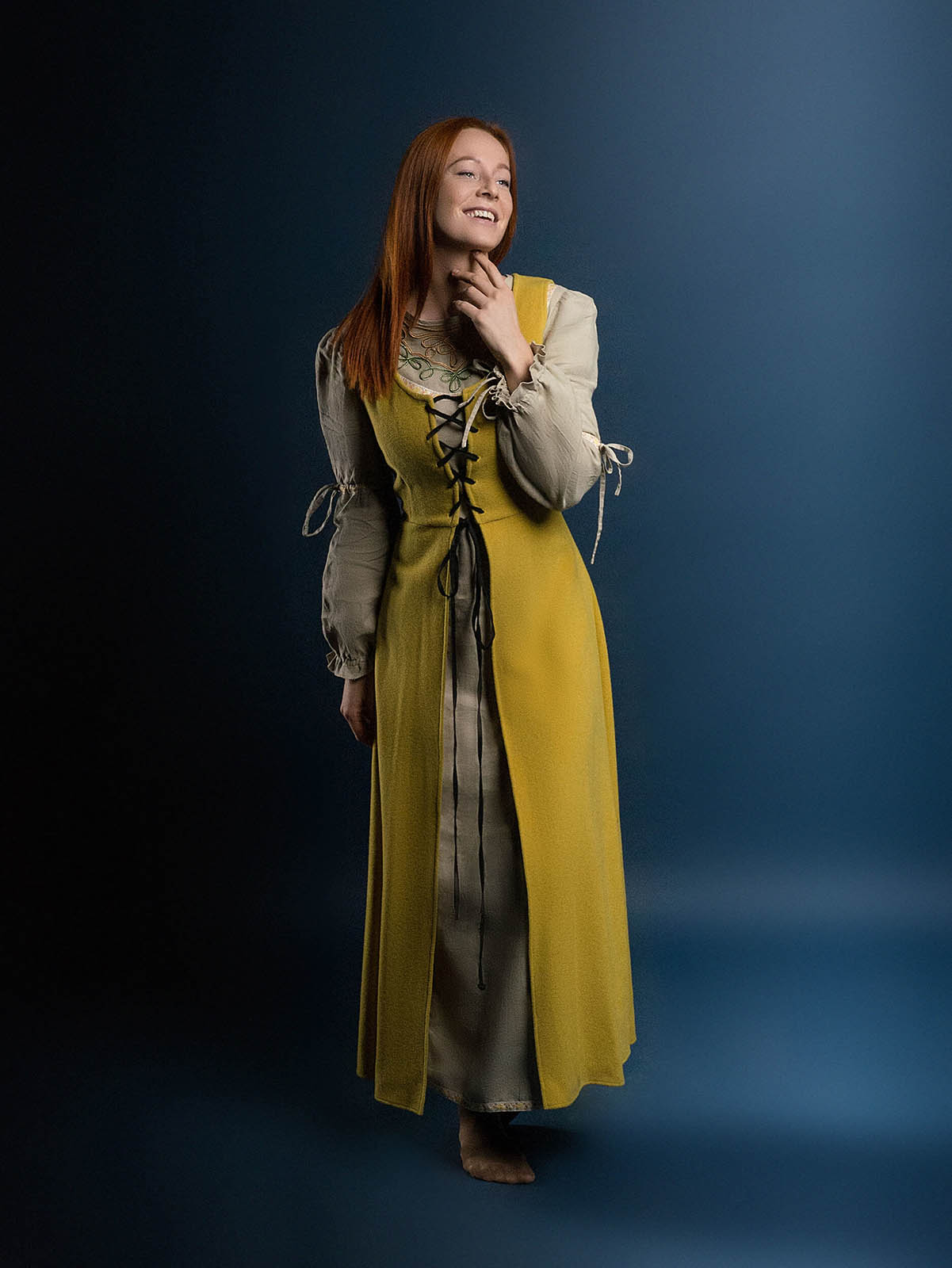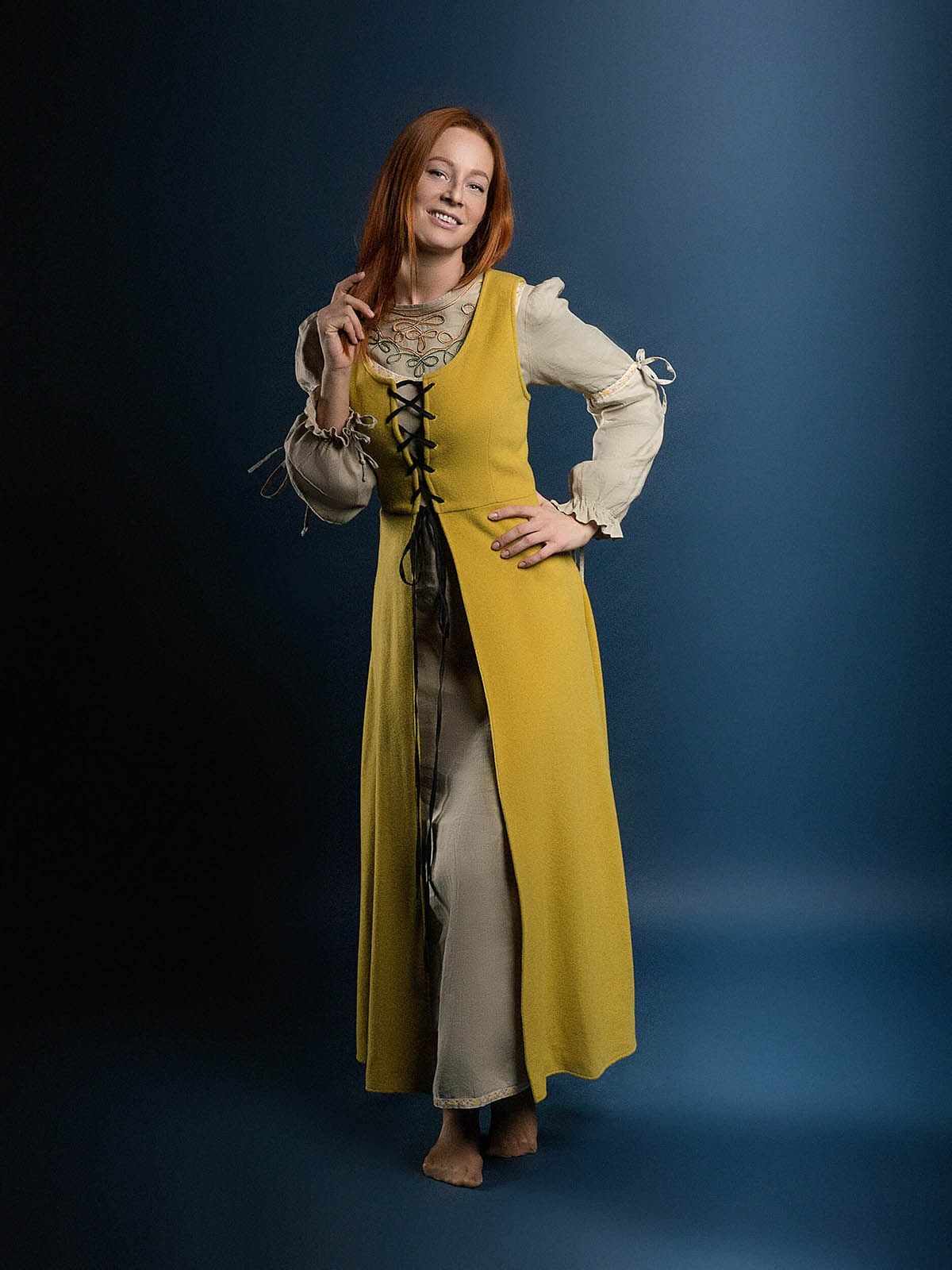 Women medieval clothing had typical wide cut and length till the feet. This mantle is made according to the fashion of Middle Ages.