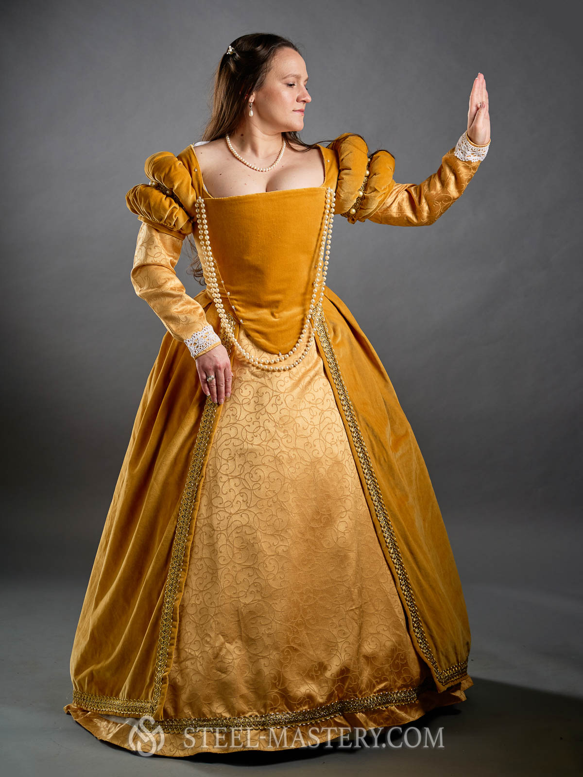 Women's Renaissance court costumes in France were particularly beautiful. Without excessive Italian languor, without British primness, and Spanish austerity, it absorbed all the best from Renaissance fashion trends. A slim and soft silhouette, a deep, but not vulgar neckline... Sophisticated and cosy, beauty and romance without anything fancy. Steel Mastery presents you our gorgeous incarnation of this elegant outfit.