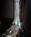 Metal of plate legs and sabatons are covered with floral patterns of grape wines and Tudor roses, like Greenwich Armour masters of Tudor epoch were making on their works. However, only your imagination defines how your plate legs and sabatons will be decorated.