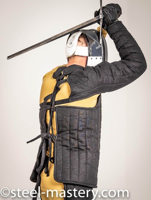 Agree, when you training, this HEMA chest protector will be perfect, as it defend your chest and flanks. Moreover, we sure you will not turn your back to opponent, so it is no need in full body protection and more weight. However, remember – this is specialized HEMA training fencing equipment and it will not protect you at full-contact SCA battle trainings, SCA and reenactment events.