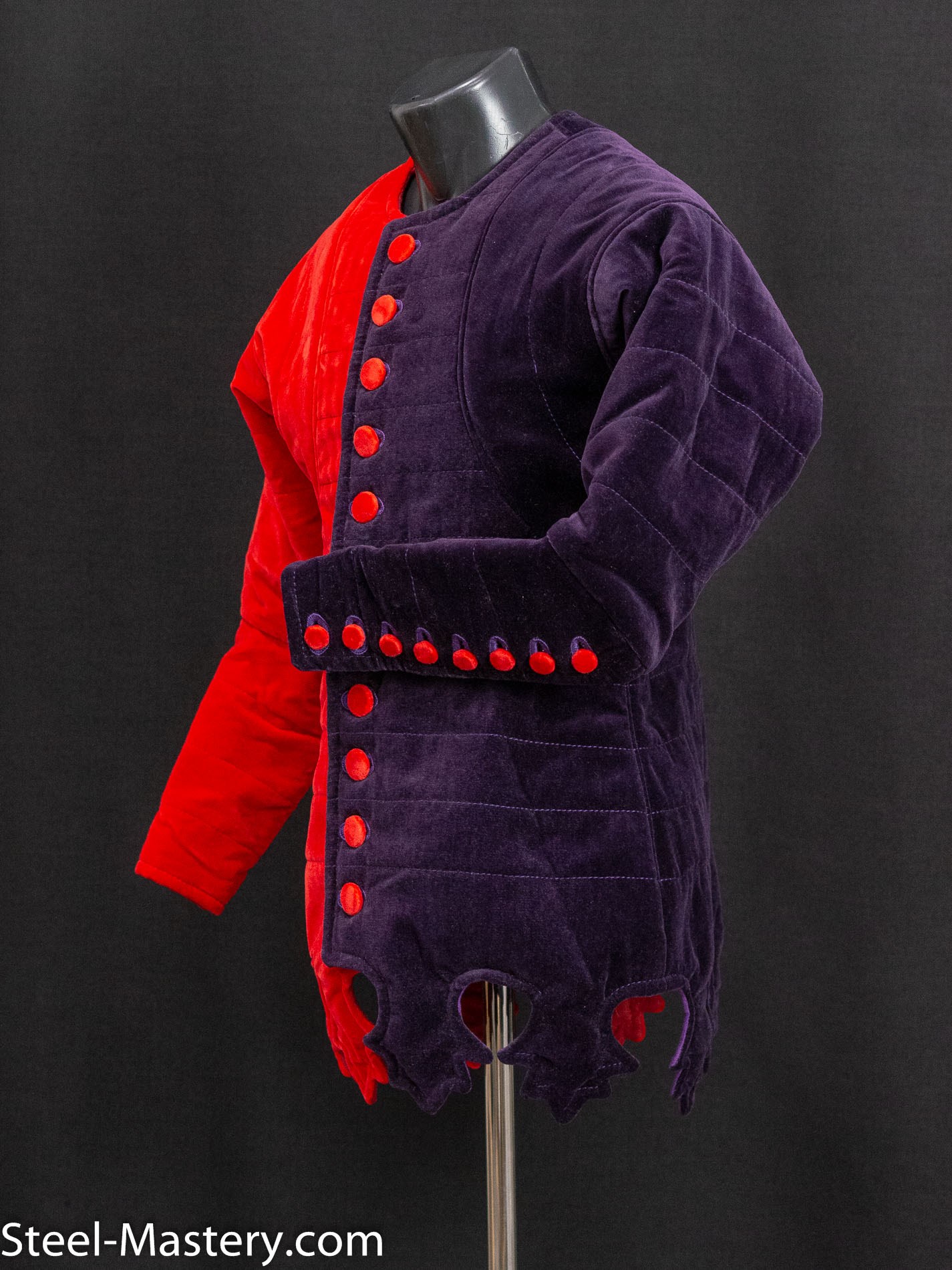 Various color are available for order. If you choose half-coloured or quarter-coloured gambeson jacket, please inform us by e-mail, what colours you prefer and its exact disposition.