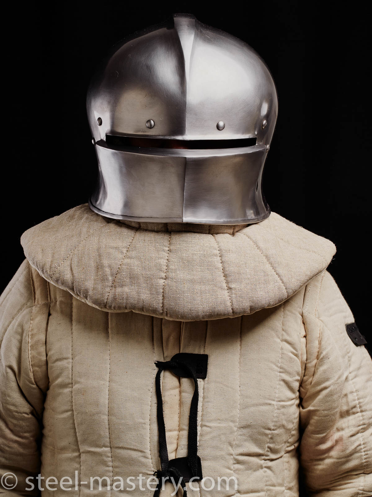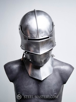 This is a copy of a sallet made by the Austrian master-gunsmith Caspar Rieder. The original dates back to 1480 and you can see it in the Metropolitan Museum of Art in New York. Earlier it was in the ancestral armory of the Counts Trapp at Churburg Castle, South Tyrol.