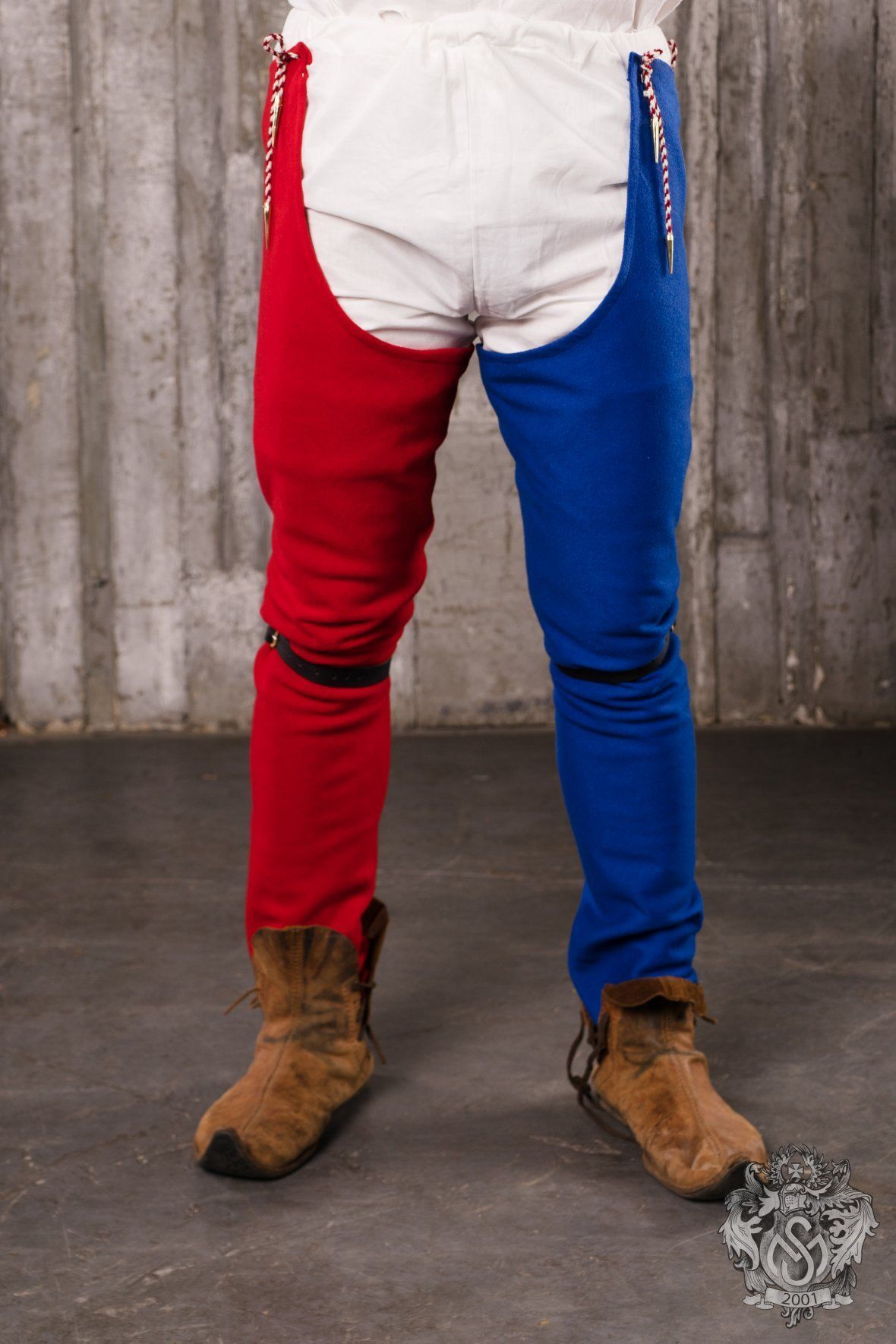 Chausses are made of wool. They can be fixed with leather or fabric laces under the knee.