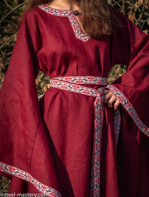 Try to feel yourself like a sophisticated medieval Lady, delicate strolling through the hall of the castle or festival field at this medieval princess dress. Gentle picking up a long dress hem and hiding thin hands in the wide sleeves of your bliaut. Realize this dress is not just beautiful medieval woman costume, it allows any of modern woman to feel like a fragile lady of the 12th century, a damsel in distress or a beautiful lady in the window.