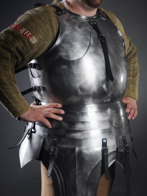 This model of Gothic cuirass is based on the patterns from the funeral armour on English knight Ralph Fitzherbert (d.1483).