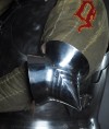 Gothic pointed outers have leather belts with buckles for fastening on the joint. This armor should be worn only over padded gambeson.