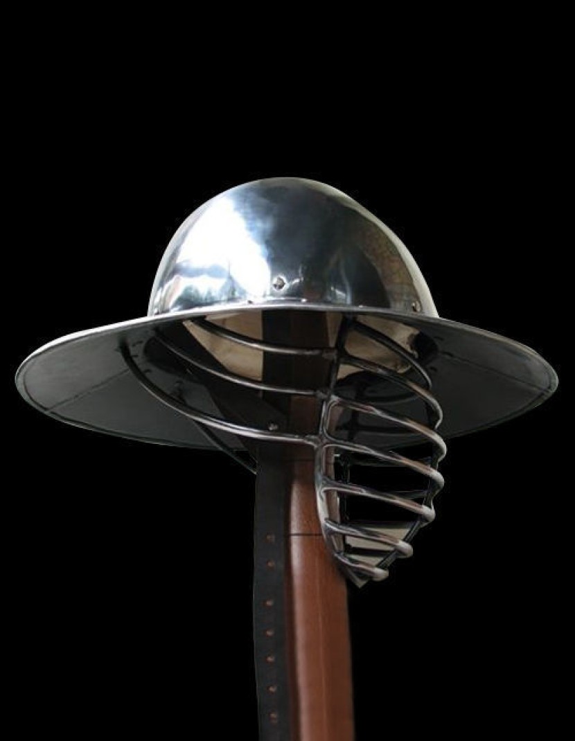 Phrygian helm with bar grid and full neck protection photo made by Steel-mastery.com Chapel-De-Fer photo made by Steel-mastery.com Austrian 15th-century sallet photo made by Steel-mastery.com German Gothic Sallet, XV-XVI century photo made by Steel-mastery.com CAP AND BELLS (HAT OF COURT JESTER ) photo made by Steel-mastery.com Medieval pilgrim hat photo made by Steel-mastery.com Leather liner for norman, spangen or conic helmet photo made by Steel-mastery.com Decorative face mask with embroidery "Knight" photo made by Steel-mastery.com The woman headwear photo made by Steel-mastery.com Kettle hat photo made by Steel-mastery.com Torse - medieval heraldy headband photo made by Steel-mastery.com Medieval men s headwear, XIV-XV centuries photo made by Steel-mastery.com  Liner for Great Helm photo made by Steel-mastery.com Bascinet hounskull, early XV century photo made by Steel-mastery.com Hennin, XV century photo made by Steel-mastery.com Conical spangen helmet of the XII century with bar grill photo made by Steel-mastery.com Landsknecht flower hat with hand-woven cord  photo made by Steel-mastery.com Bascinet with Klappvisor photo made by Steel-mastery.com Beret of Landsknecht, XVI century photo made by Steel-mastery.com Hair covering with fabric snood photo made by Steel-mastery.com Chapel-de-fer with SCA grill photo made by Steel-mastery.com Decorative face mask with embroidery "Knight" photo made by Steel-mastery.com Italian bascinet 1390-1430 photo made by Steel-mastery.com Gothic Sallet with visor - 15ct photo made by Steel-mastery.com