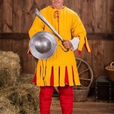 Gambeson with festoons on the sleeves and bottom hem can be found in the manuscripts of the XII-XIII centuries. It can be worn over or under the chainmail.