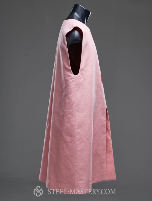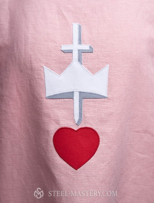 There is linen medieval tabard consists of 2 layers of fabric, decorated with an crown, crest and red heart.