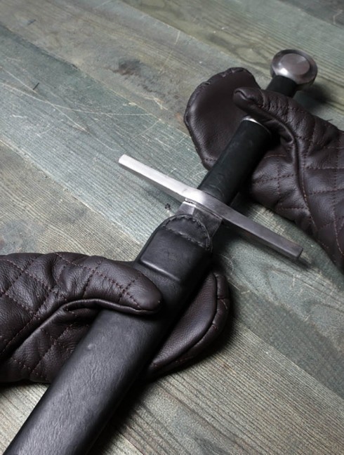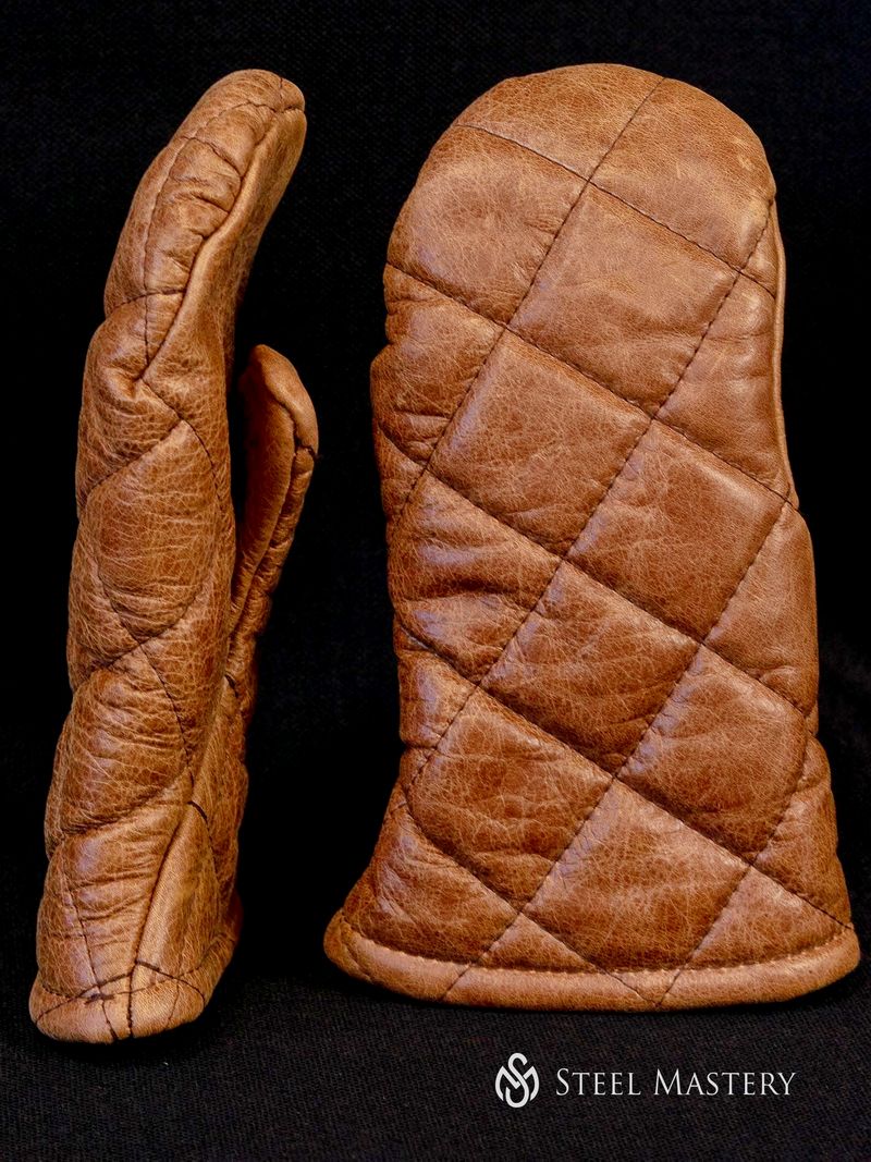 Padded gauntlets with leather insets Guanti imbottiti e muffole Padded gauntlets with chain mail protection Guantoni e muffole Padded gauntlets with full chain mail protection Guantoni e muffole gambi Gambeson