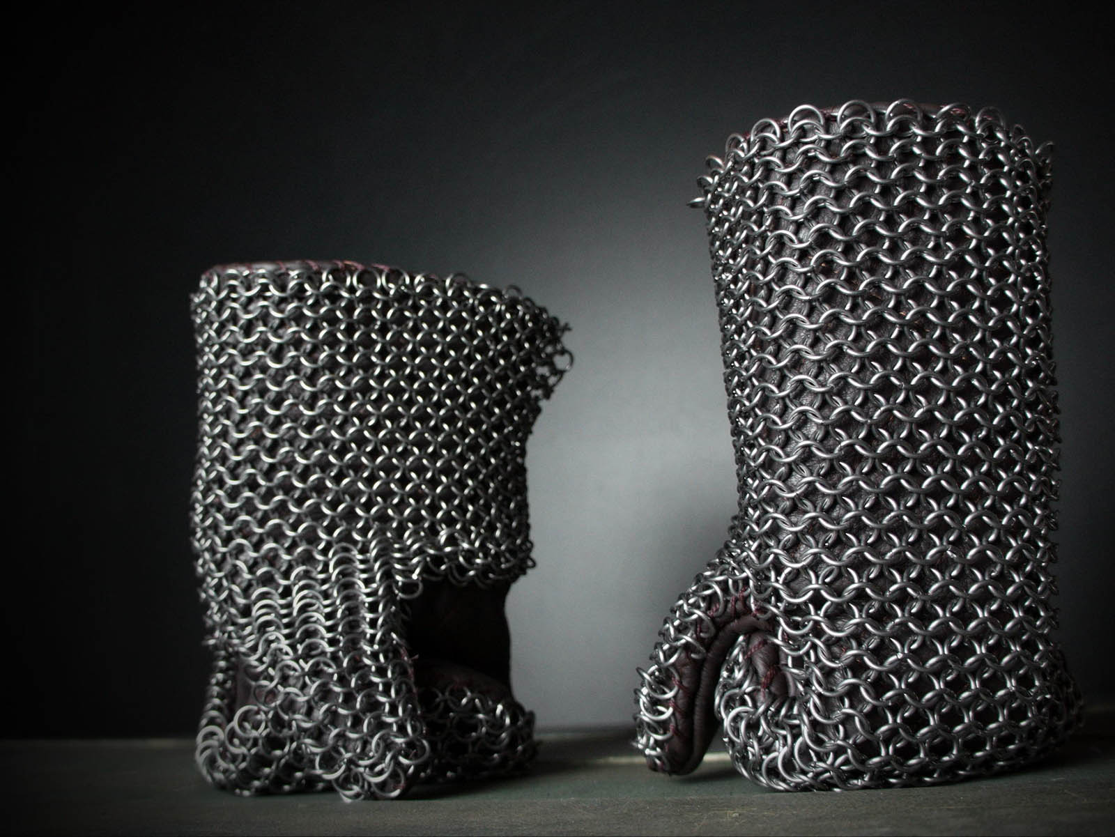 Leather of different colour is available for order. Mail part is made of mild steel rings 1.6 x 8.0 mm. Type of butting is 4 rings in 1.